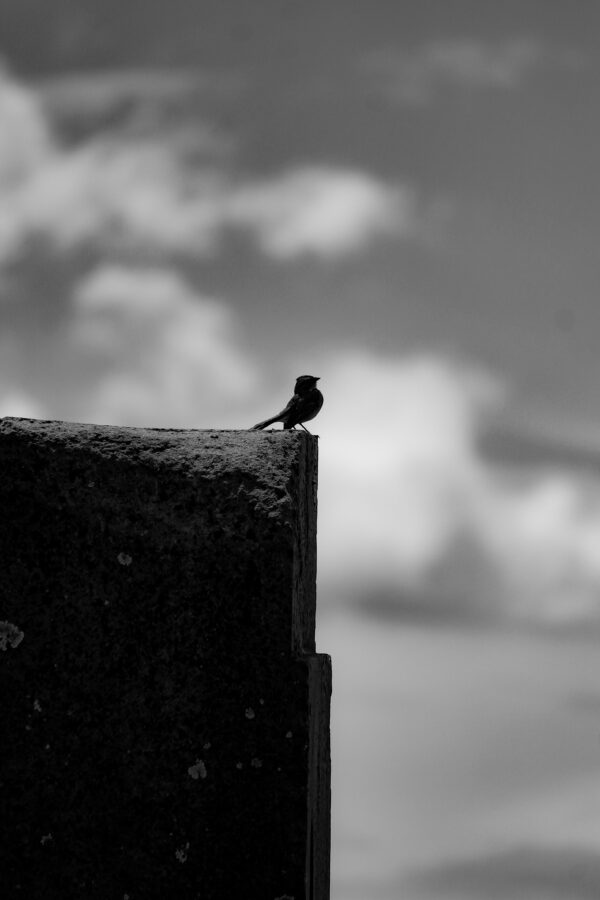 Em tons de cinza, um pequeno pássaro repousa sobre uma pedra, em perfeita quietude. A simplicidade da cena transmite calma, solidão e uma beleza sutil que convida à contemplação. Um quadro ideal para ambientes serenos, onde o silêncio e os detalhes contam histórias.